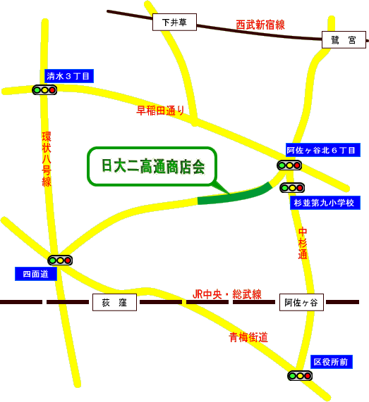 日大二高通り商店会マップ&アクセス